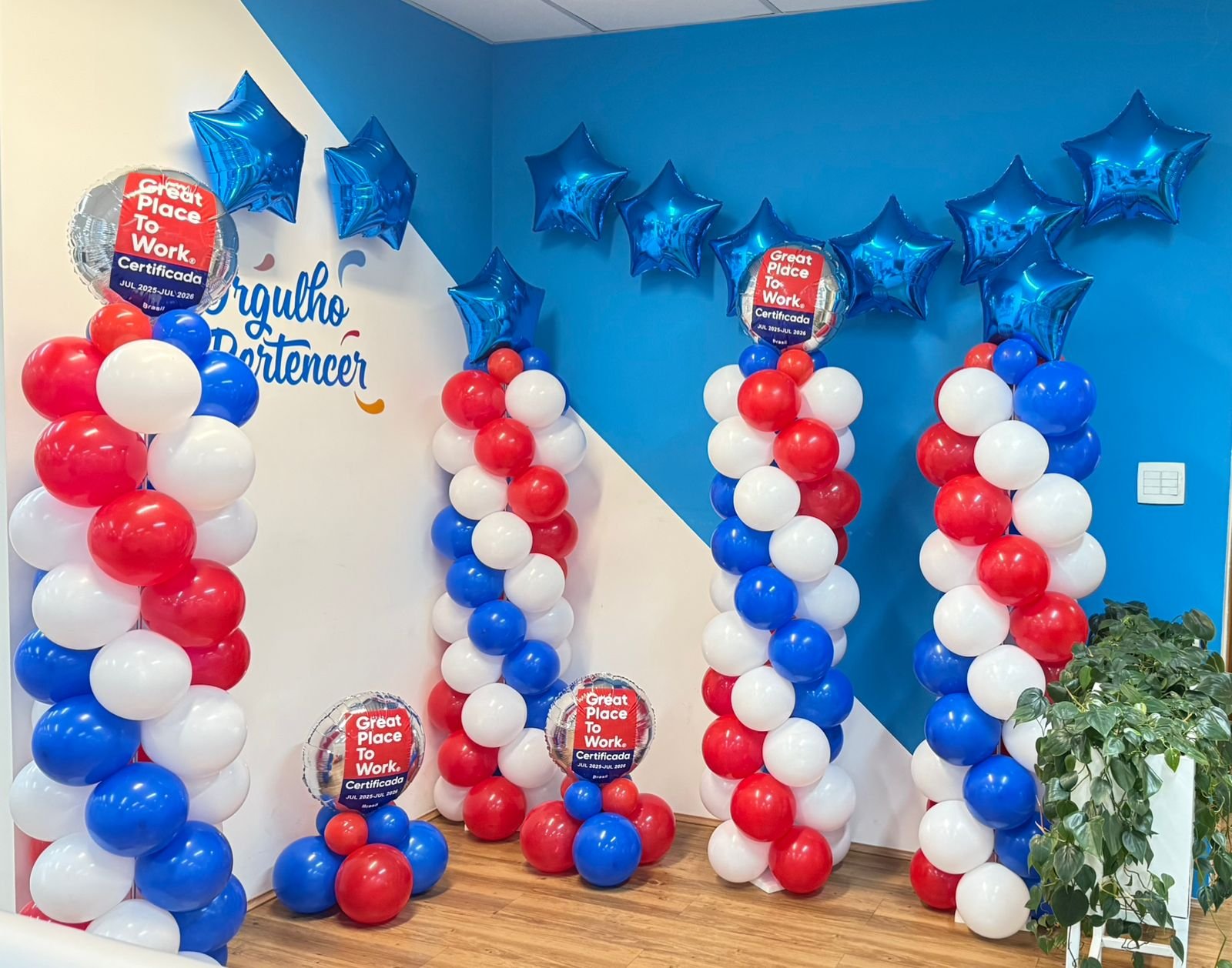 Arcos, colunas e esculturas em balões premium para criar volume, destaque e um visual encantador.